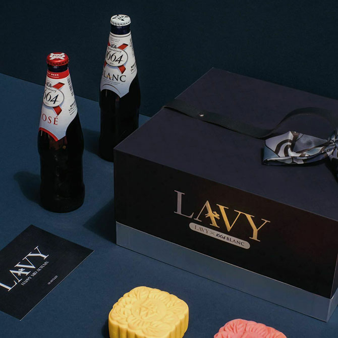 Lavy is a new online gifting company launched by Venice Min, created to provide a premium gifting experience for different occasions. For its first gift in conjunction with the Mid-Autumn Festival, Lavy has collaborated with 1664 Blanc to offer two specially crafted beer-infused mooncakes inspired and complemented by the 1664 Blanc and Rose. The mooncakes and beer bottles arrive in a navy blue box adorned with an abstract silk scarf, which can be reused to store jewellery or other personal items.